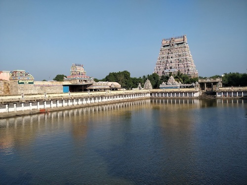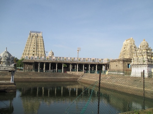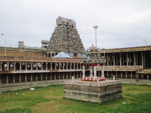 Sein mächtiger Gopuram – fast 60 Meter hoch – dominiert die Silhouette der Stadt. Der Tempel wurde um 600 n. Chr. gegründet und später von den Pallavas, Pandyas, Cholas und den Königen des Vijayanagar-Reiches erweitert.