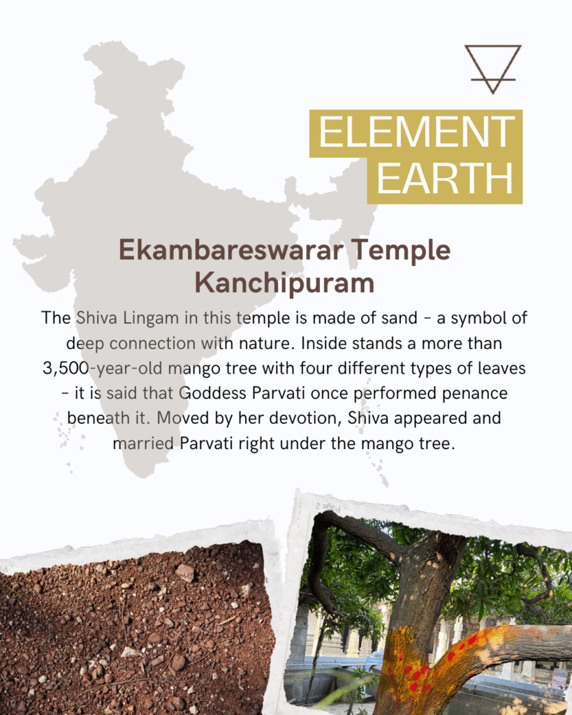…visit all the ancient 5 element temples (5 Pancha Butas : earth, water, fire, air and ether). These are Manifestations of Shiva.